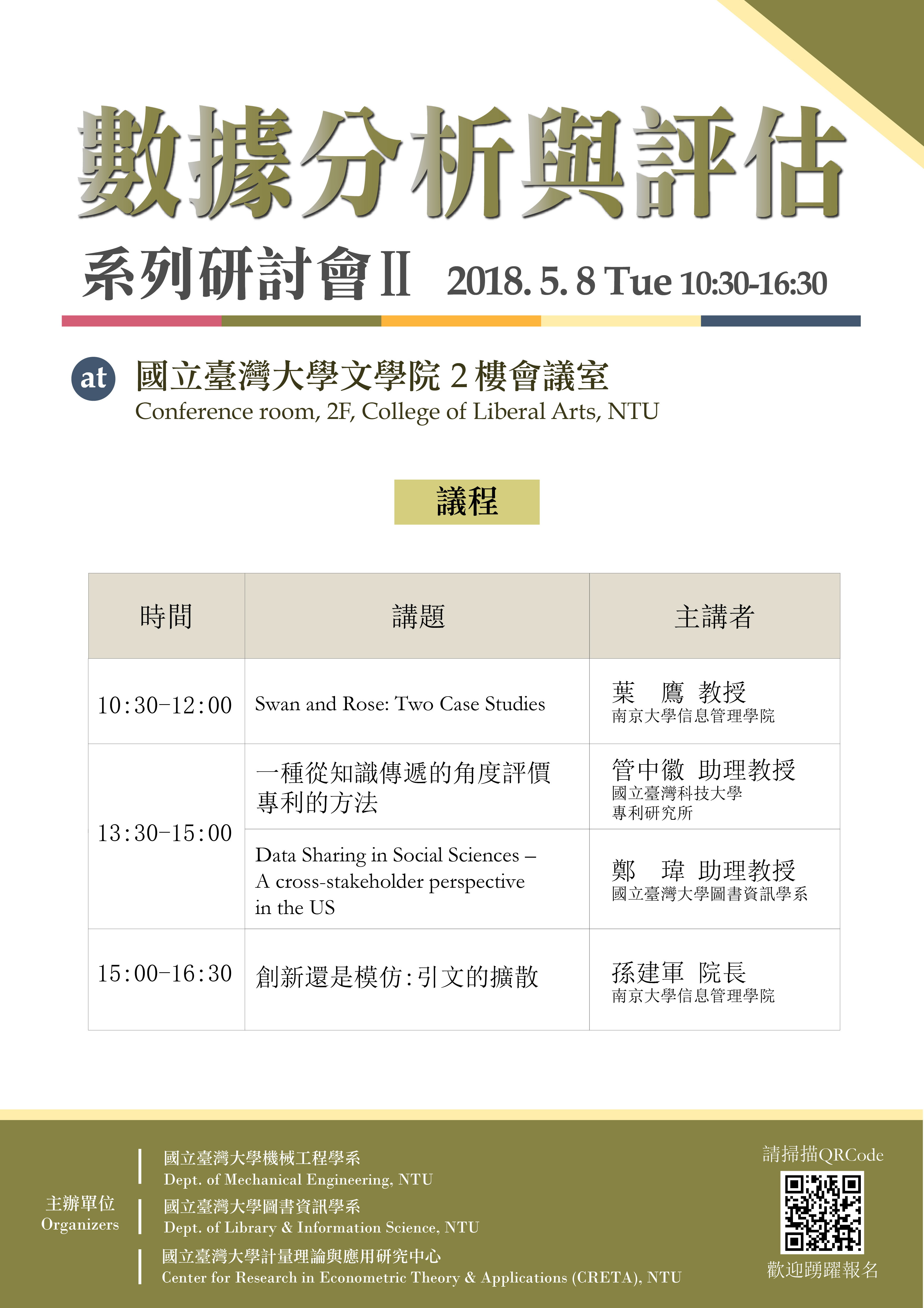 國立臺灣大學機械工程系、國立臺灣大學圖書資訊系、國立臺灣大學計量理論與應用研究中心活動日期: